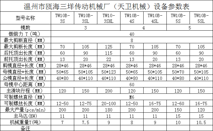 您當(dāng)前的位置:首頁(yè) / 產(chǎn)品中心 / 四模四沖冷鐓機(jī) / └ TW10B(M6)多工位冷鐓機(jī) / 四模四沖TW10B