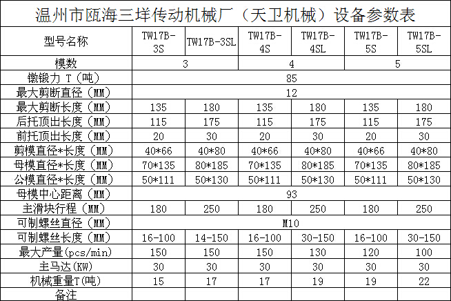 您當前的位置:首頁 / 產(chǎn)品中心 / 四模四沖冷鐓機 / └ TW17B(M10)冷鐓機 / TW17B四模四沖多工位冷鐓機