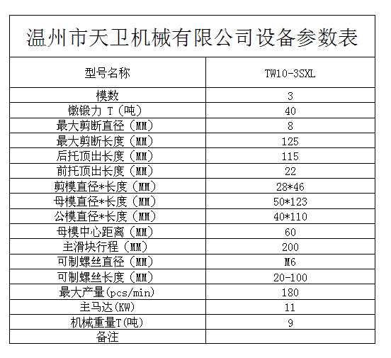 您當(dāng)前的位置:首頁(yè) / 產(chǎn)品中心 / 三模三沖冷鐓機(jī) / └ TW10B(M6)全自動(dòng)多工位冷鐓機(jī) / TW10B-3SXL全自動(dòng)多工位冷鐓機(jī)