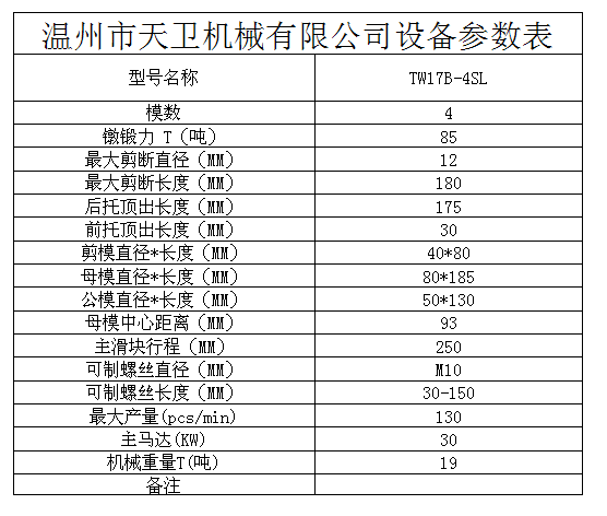 您當前的位置:首頁 / 產(chǎn)品中心 / 四模四沖冷鐓機 / └ TW17B(M10)冷鐓機 / TW17B-4SL全自動多工位冷鐓機